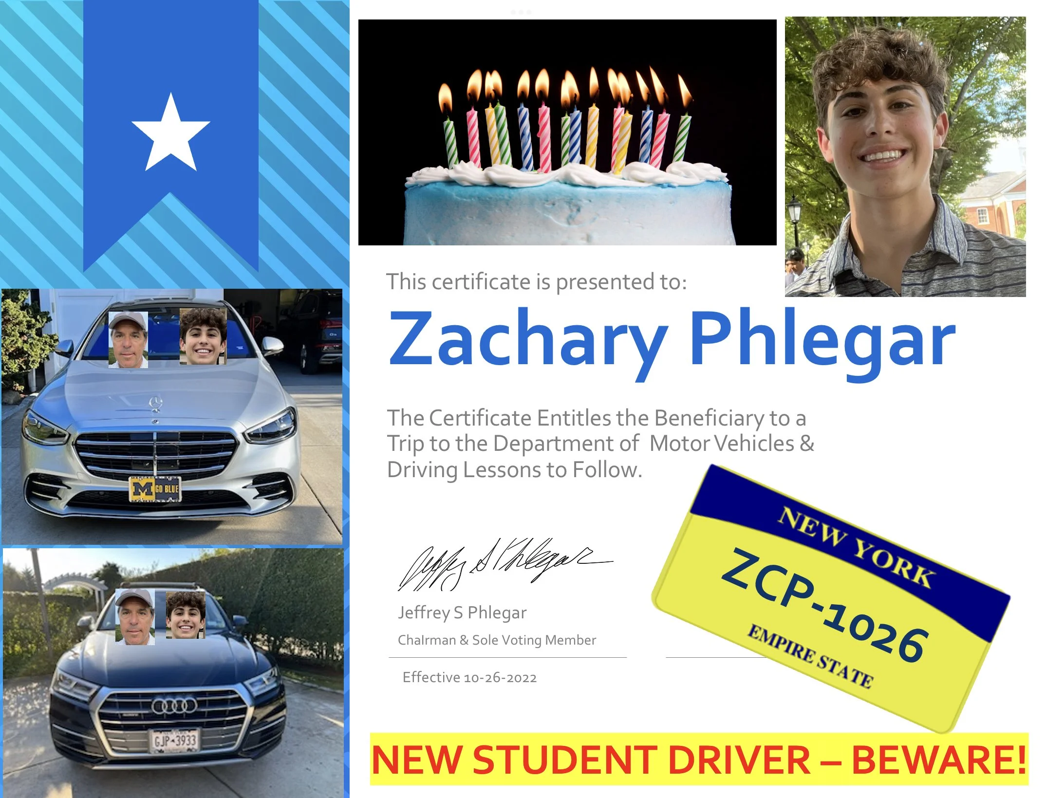 On another front, having had my 16th birthday, I am officially of age to get on the road (with my father by my side). Dad’s Wednesdays in the MacKay Princeton office means I have the good fortune of seeing him most weeks and sharing my new experience and possibly getting some driving experience in too. In both cases my goal is to “stay in the lane” and avoid contributing to any of my dad’s gray hair. In addition to studying, I have remained focused on fitness and golf – frequently outdriving my Dad on the golf course.
